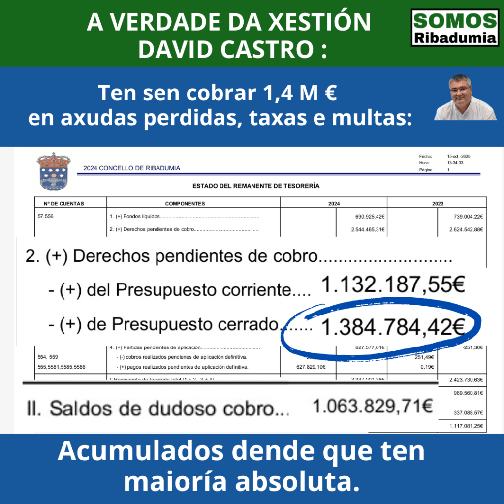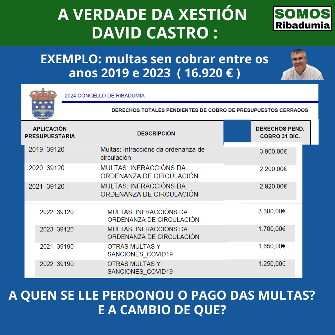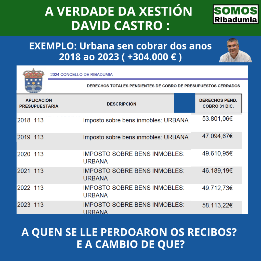 E desa cantidade, unha parte son cargos do ano 2023, que aínda pode ser que algunha cousa estivese en vía executiva, pero é evidente que David Castro leva anos, en concreto dende que ten a maioría absoluta, perdoando débedas a moita xente.