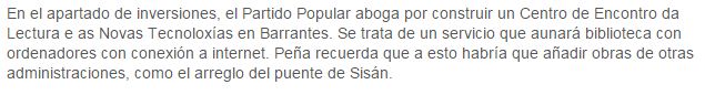 ESTAS SON AS FALSAS PROMESAS DO PP ÓS VECIÑOS DE BARRANTES