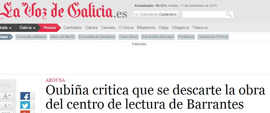 28-02-2014. O PP inclúe no orzamento o CENTRO DE LECTURA E NOVAS TECNOLOXICAS PARA O COLEXIO E BARRANTES.
