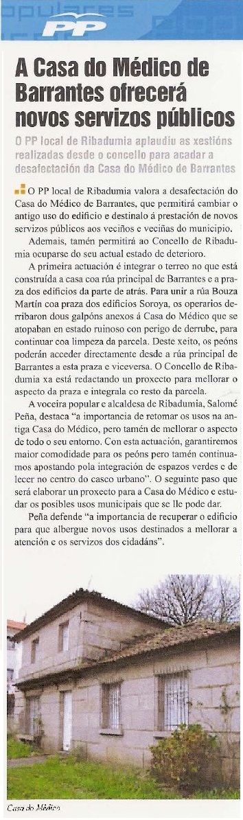 DIAS MAIS TARDE O MESMO PP XUSTIFICA QUE SE DERRUBE A CASA DO MEDICO.