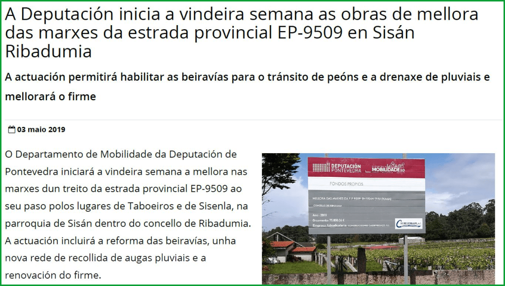 - A obra de mellora dun tramo da vía EP-9509 ao seu paso por Sisán foi un compromiso adquirido por Uxío Benitez e a propia presidenta con Enrique Oubiña no 2018.