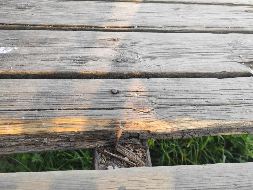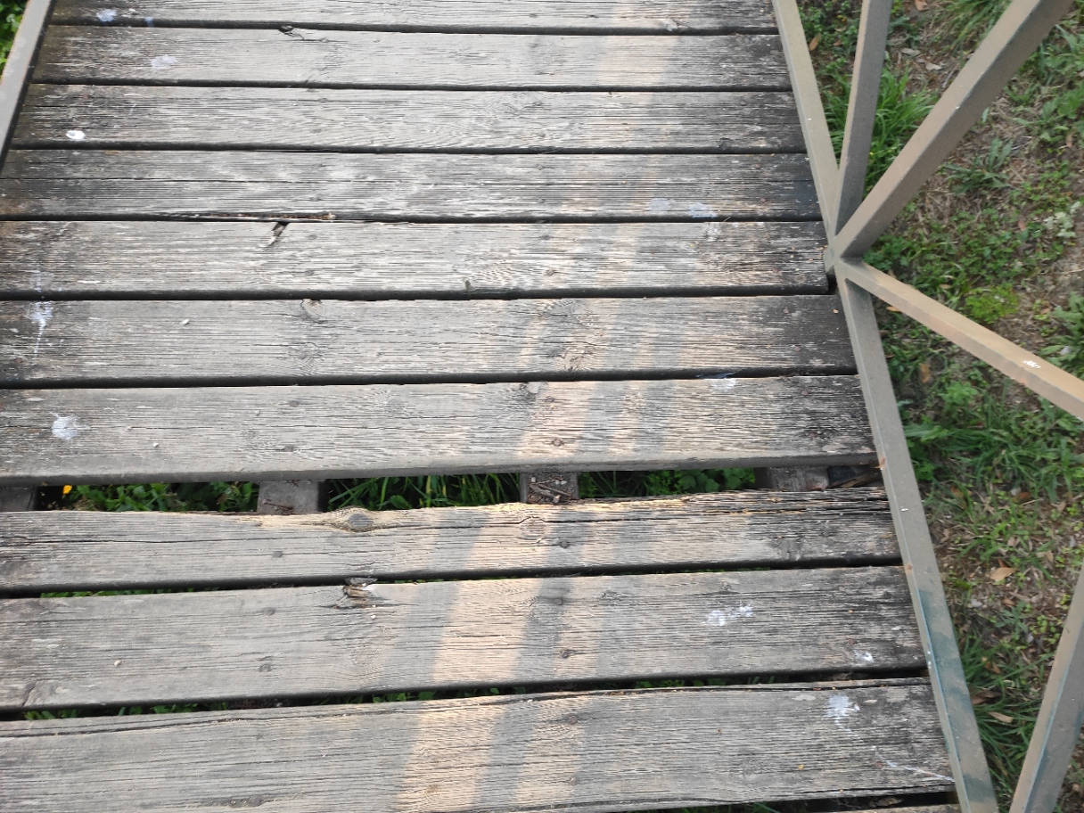- Detectamos que hai moitos elementos de madeira deteriorados e nalgún caso con puntas metálicas ou aristas que poden provocar cortes e feridas.