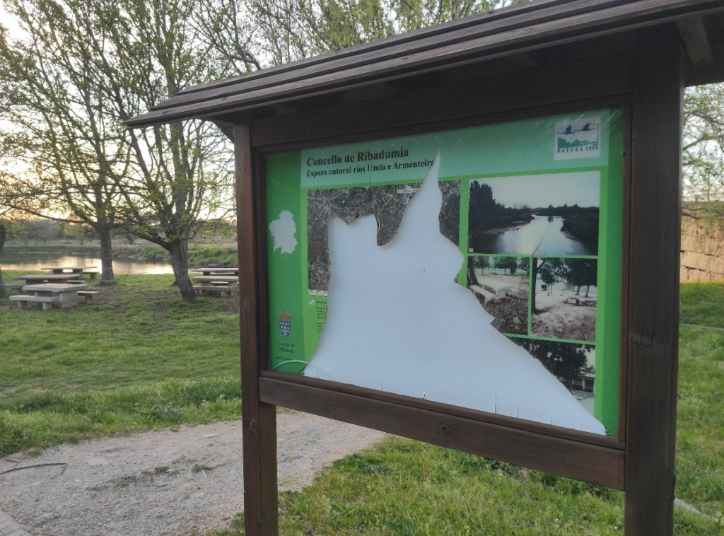 Deste xeito, tal e como vimos denunciando ao longo destes meses, percorrendo todas as sendas encontramos elementos de madeira e taboleiros informativos rotos, vallas, papeleiras, mesas… algúns tirados de calquera maneira, outros supoñendo un perigo pola presenza de puntas descubertas ou bordes cortantes, e en xeral unha falta de coidado do mobiliario urbano moi evidente para calquera que pase por esas sendas. “E pasa moita xente, pois o bo tempo está favorecendo a práctica do deporte ao aire libre entre a nosa veciñanza, así como a visita de persoas doutras concellos da contorna e do resto de Galicia, que xa esta pasada fin de semana deron moita vida tanto á ruta da pedra e da auga como a senda fluvial do Umia”.