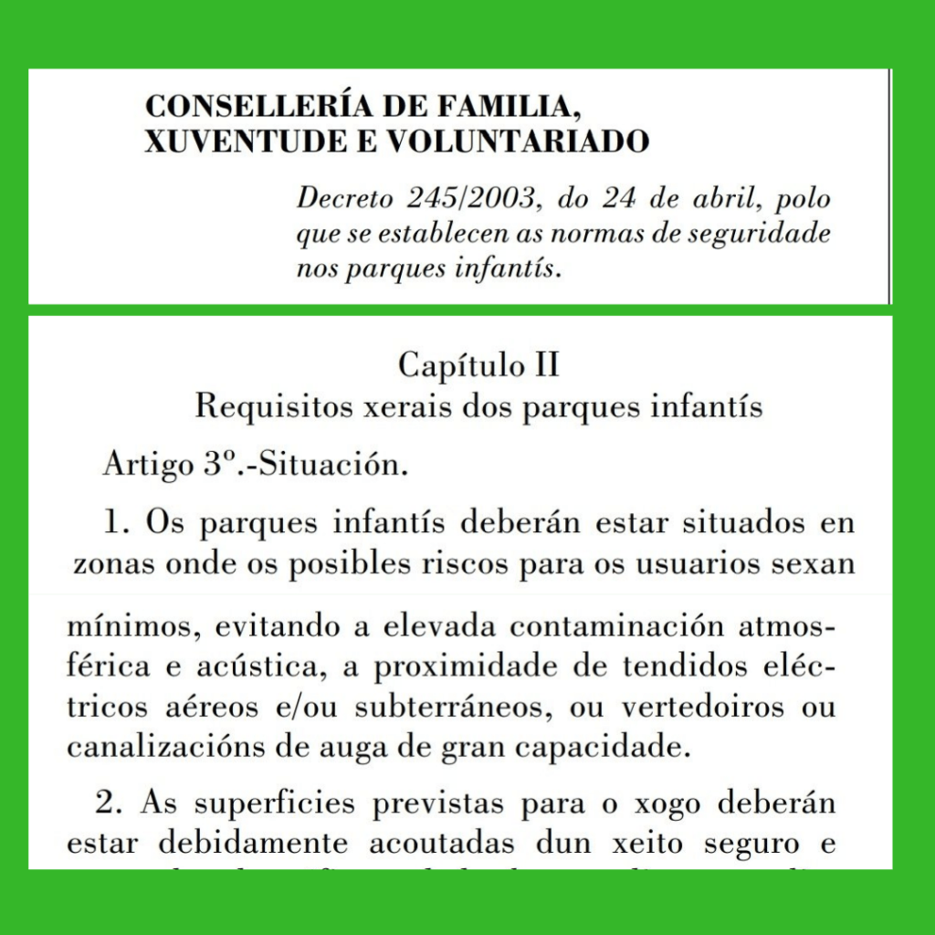 - A Xunta de Galicia e diversas normas UNE obrigan a que por seguridade os parques infantís como estes estean vallados.