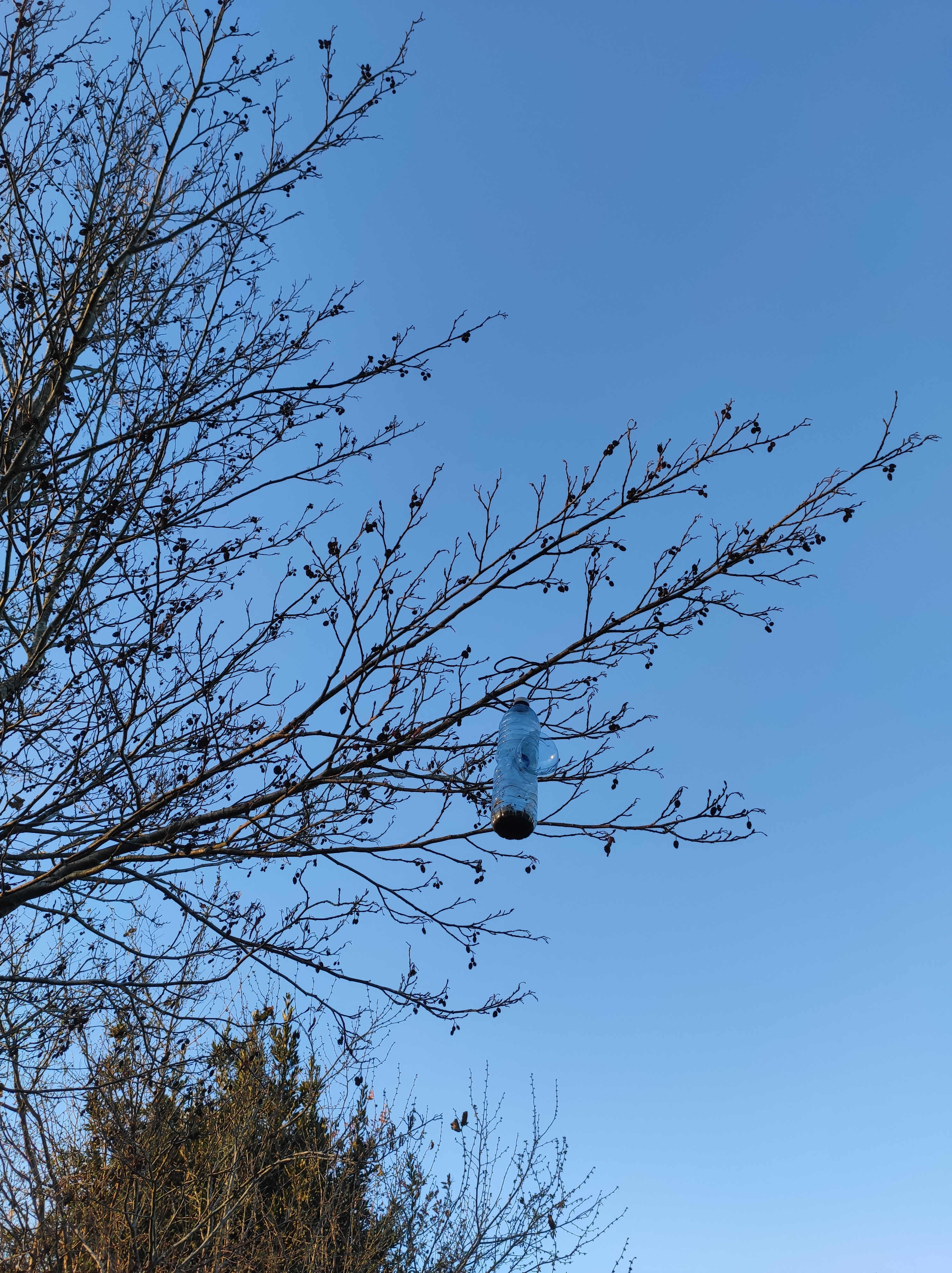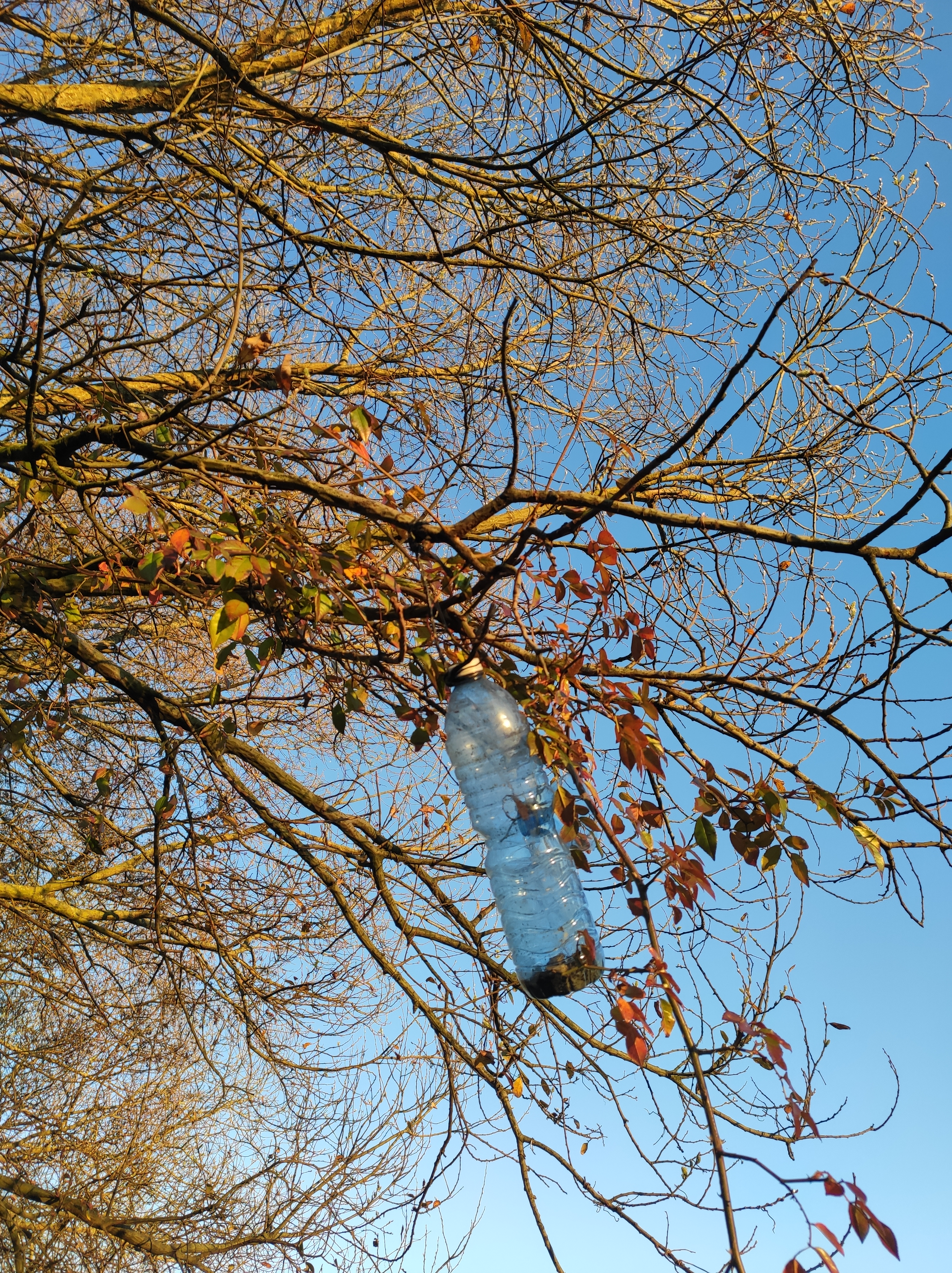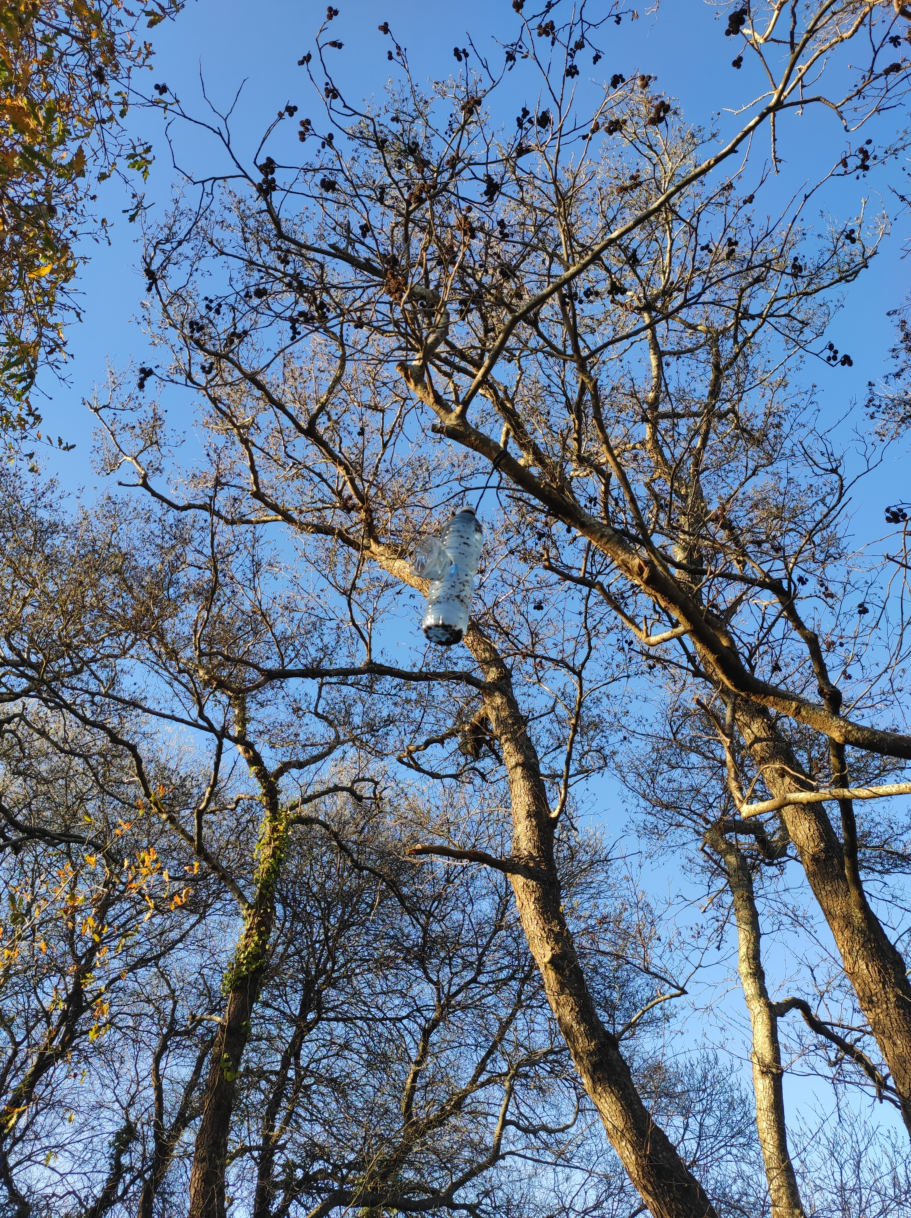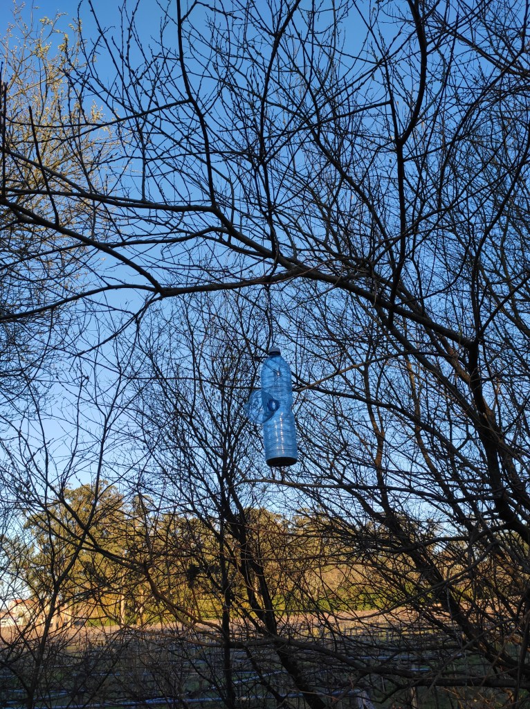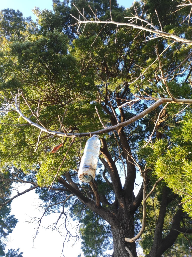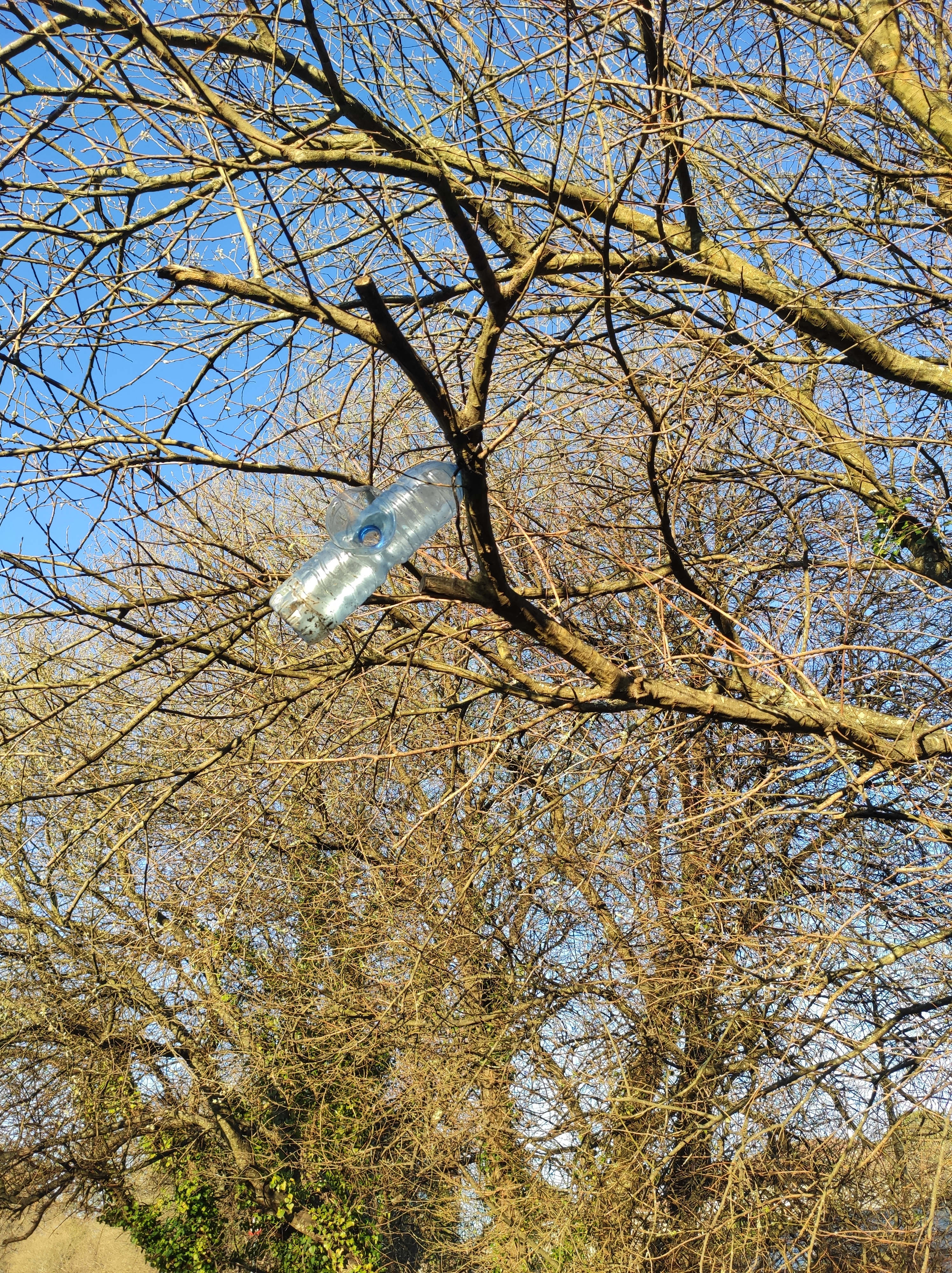 So no tramo ribadumiense da variante espiritual esta semana pasada fotografamos máis de un cento desas trampas, algunhas de anos anteriores, colgadas das árbores e agardando, aparentemente a que o vento remate de romper os cordeis que as sosteñen para ir rematar ao río. A esas hai que sumarlle as colocadas noutras zonas verdes do concello, que tampouco se retiraron.