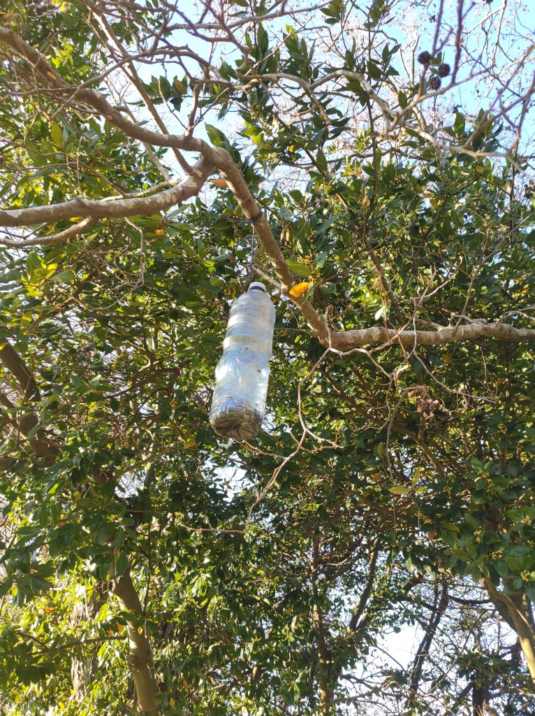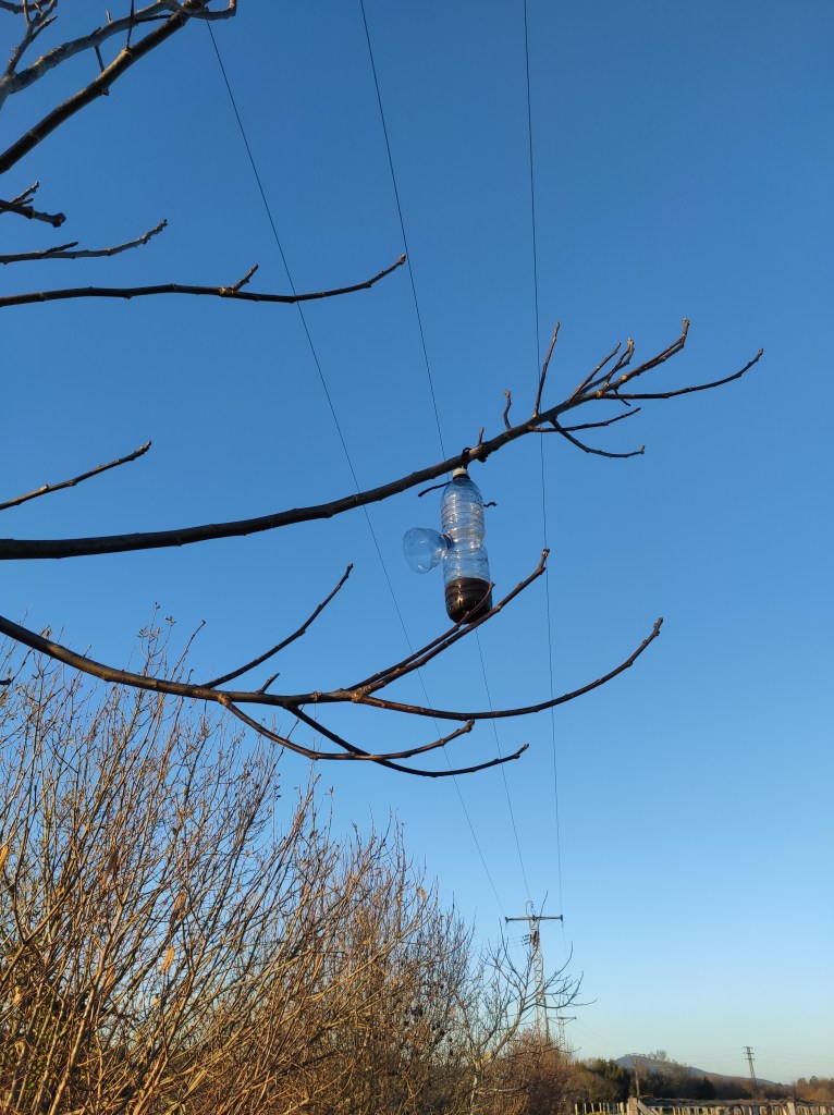 Ribadumia non conta cun plan organizado de trampeo contra a velutina, algo esencial na loita contra esta vespa. Iso non quere dicir que non se fagan trampeos, pero os que se veñen realizando nos últimos anos veñen da man da iniciativa de diversos colectivos, a máis recente a colaboración CPI-DomusVi-Proteccion Civil, que co visto bo do Concello, previa foto de rigor, encheu as zonas verdes do concello de trampas artesanais con líquido atraínte. E aquí é onde xorde o problema deste tipo de iniciativas feitas con moi boa vontade, pero que sen ter o respaldo dun plan organizado, caen en saco roto. As trampas desta última iniciativa colocáronse e maio do ano pasado, cando a primeira fase do ciclo vital das raíñas, que é cando funcionan os trampeos cuxo obxectivo é limitar o número de raíñas que constrúen niño, xa case tiña rematado, polo que o efecto das trampas quedou moi mitigado. Ademais, ninguén se ocupou de facerlle un seguimento, nin de revisar, limpar e recargar as trampas, polo que un mes despois da súa colocación, o que tiñamos era tres centos, segundo os datos aportados, de botellas de plástico colgadas de polas de árbores, sen ser de utilidade para nada e dando unha pésima imaxe.