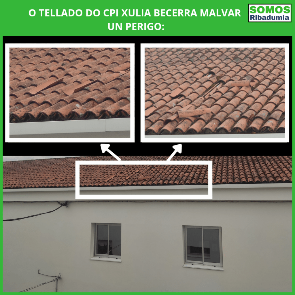 Ante a gravidade do asunto, na mesma mañá presentaremos un escrito no concello, para solicitar a inmediata actuación nese tellado, que se retiren as tellas soltas e se garanta a seguridade.