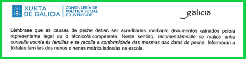 O goberno de David Castro tamén lle ocultou á Xunta o proxecto educativo e a proposta pedagóxica, algo que non ten moita razón de ser pois son documentos que están a disposición das nais e pais, salvo que ese proxecto e proposta non cumpran algún parámetro ou conteña algo que se queira ocultar, que non nos parece que sexa o caso, mais ben outro exemplo de neglixencia e de desidia de David Castro, que pensa que as cousas se autoxestionan soas.
