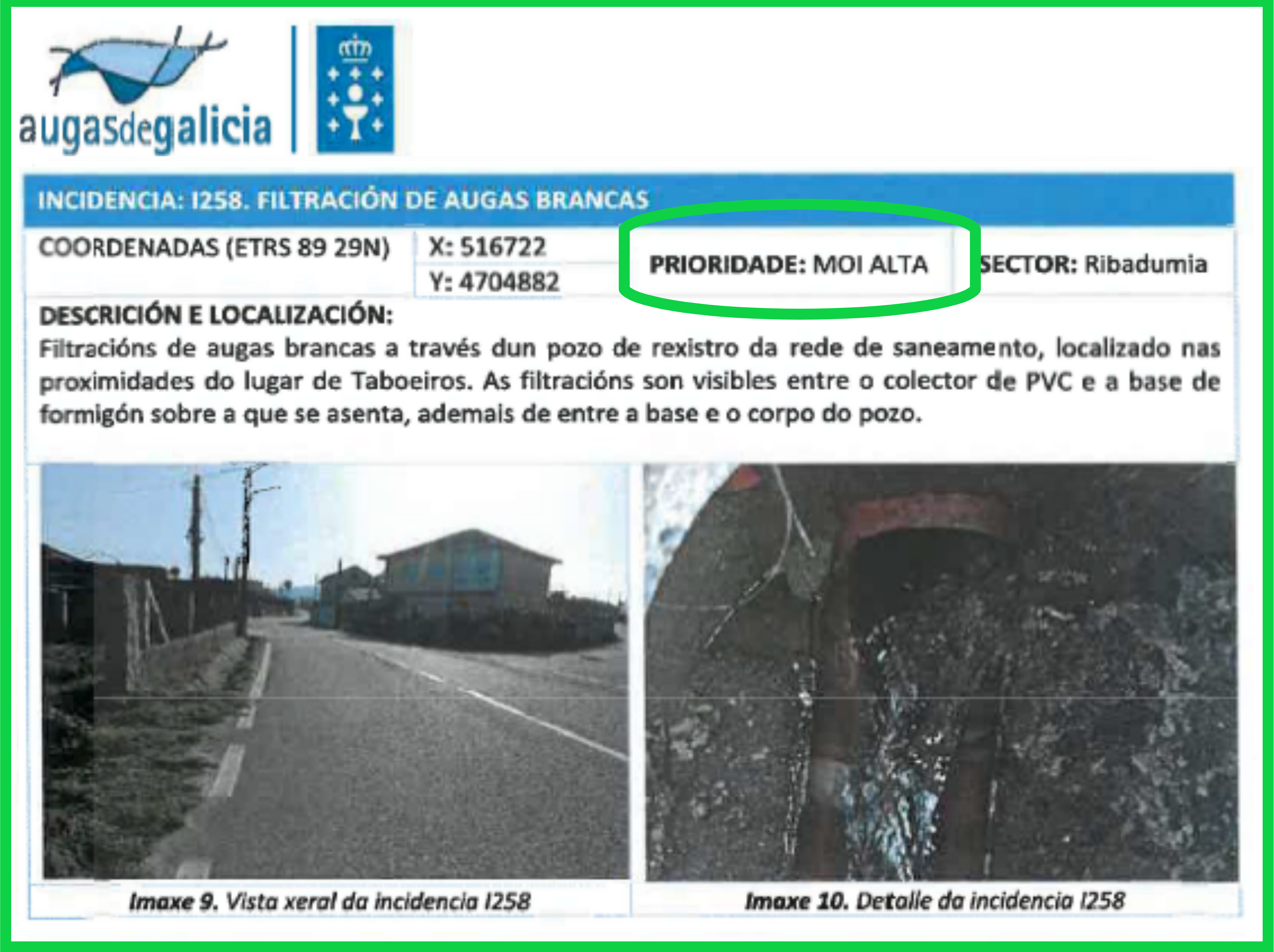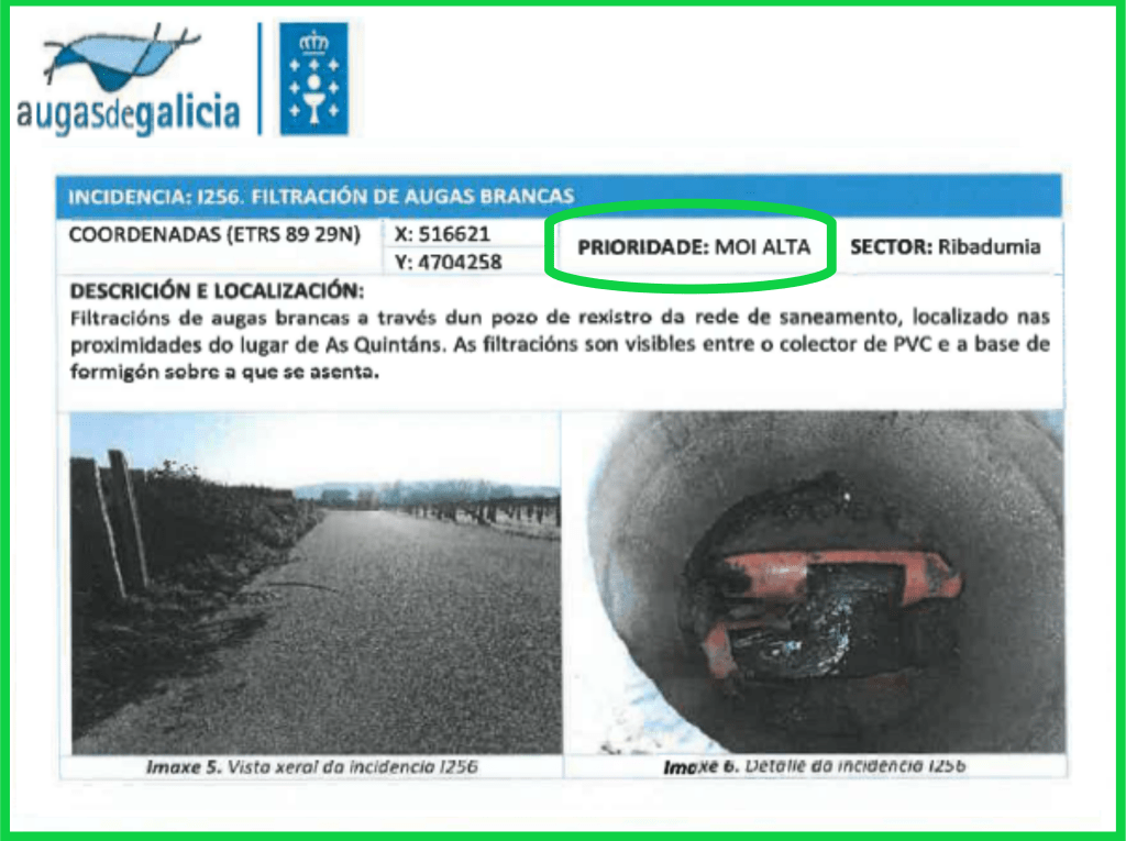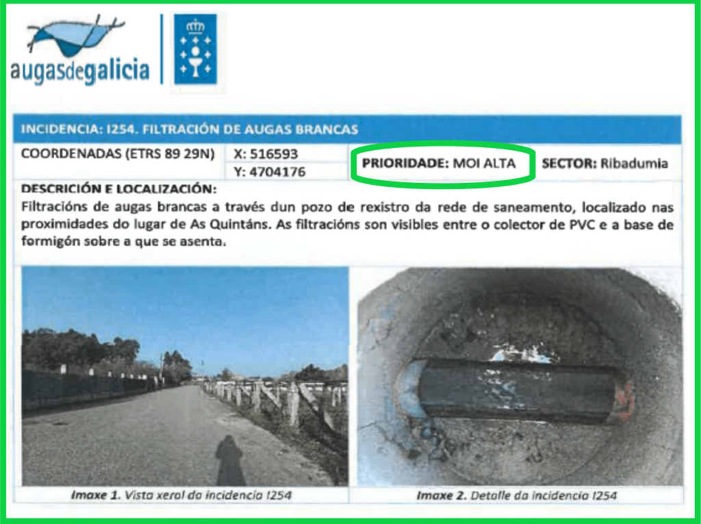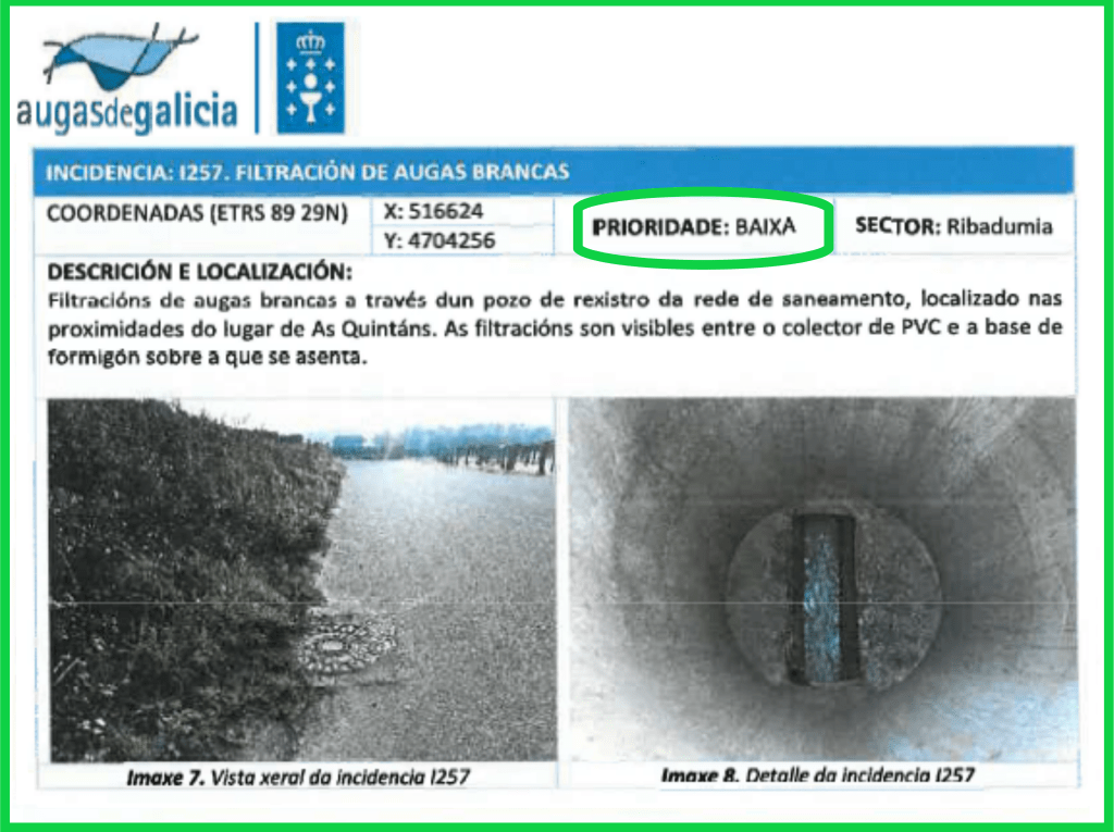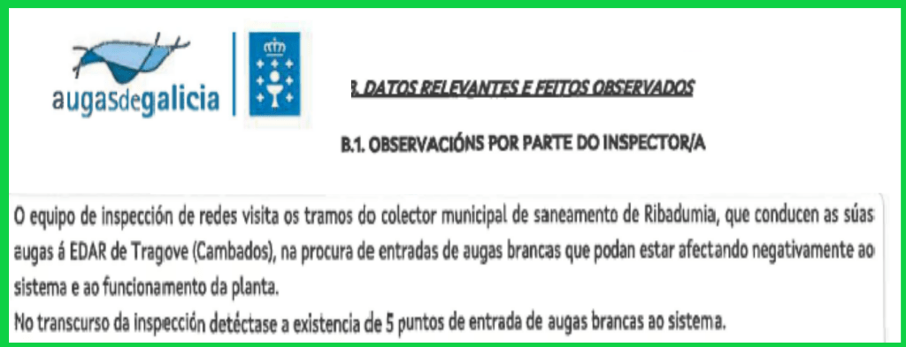 O verquido ante o cal David Castro non actuou rematando cunha multa non foi a única cuestión mediambiental ante a cal o alcalde non quixo dar explicacións no Pleno. Sergio Soutelo tamén presentou preguntas relativas a outra comunicación de Augas de Galicia, con data do 5 de maio, dous meses antes do pleno, onde se informaba de varios problemas na rede de saneamento, e concreto un total de cinco incidencias por entrada de augas pluviais á rede de fecais.