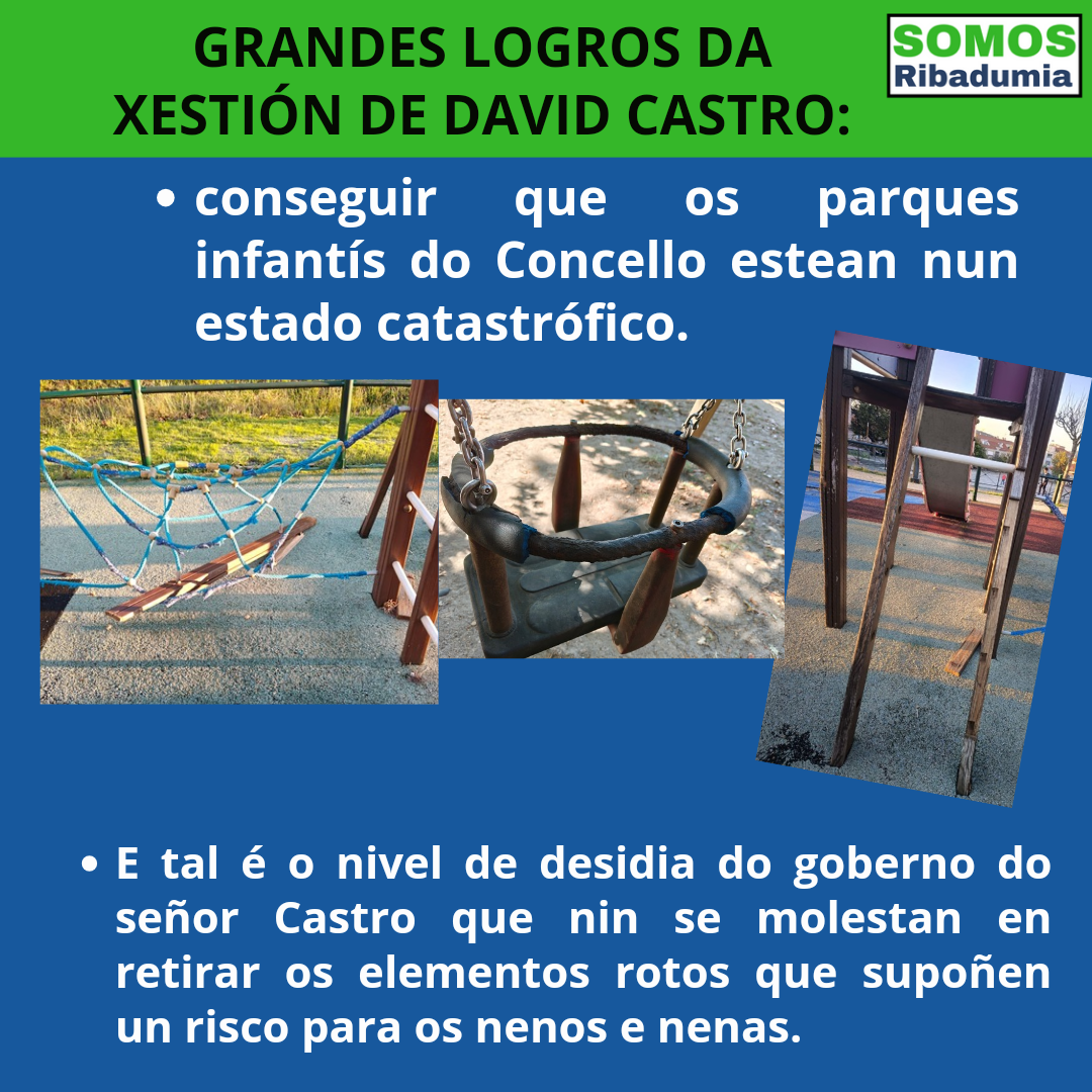 Unha vez máis pedímoslle a David Castro que compra as súas obrigas de alcalde, e arranxe os parques infantís do noso concello.