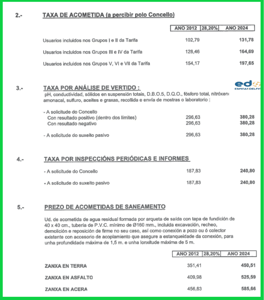 - A empresa concesionaria da xestión do saneamento propúxolle ao Concello unha suba dun 28,20% da taxa de saneamento.