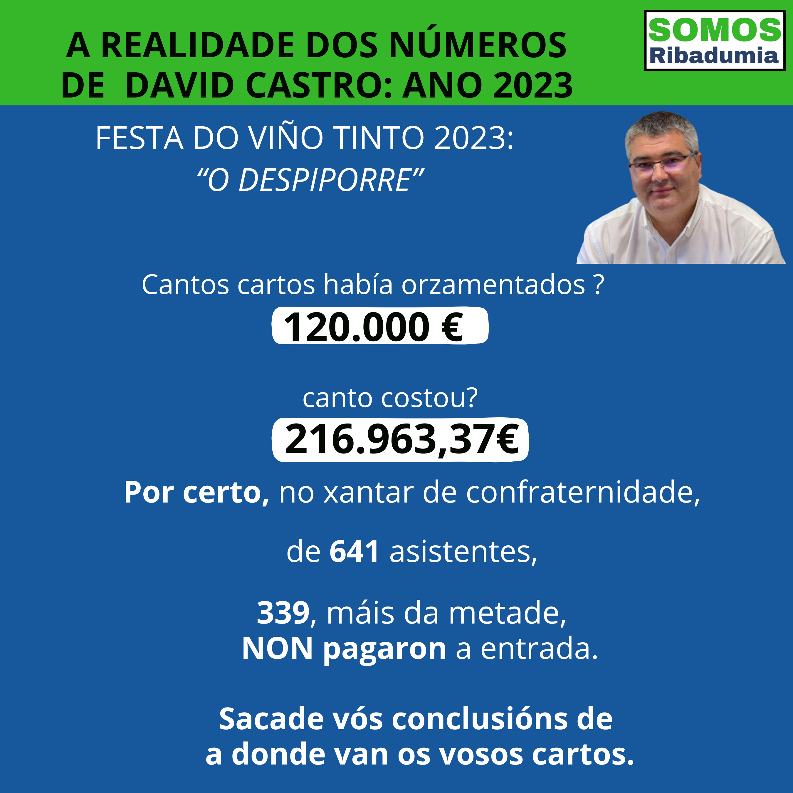 Para o que non hai limite é para a Festa do Tinto. En 2023 superou os 200.000€, sen que ninguén sexa capaz a explicar en qué. Non só iso, a Concelleira de contas admitiu en Pleno que os ingresos da lotería non se computaron e se entregaron a “comisión organizadora “ da Festa para “pequenos gastos”, ou sexa para pagos en B . Recordemos que a Festa do Tinto a xestiona dende o 2016 o goberno local e esa “comision organizadora” non deixa de ser un grupo de persoal voluntario que axuda. Todos os gastos e ingresos os debe declarar o Concello. O que dixo a Concelleira é moi grave, por qué en todo caso os ingresos deben computarse e despois poñer na parte de gastos o que corresponda con eses “pequenos gastos”.
