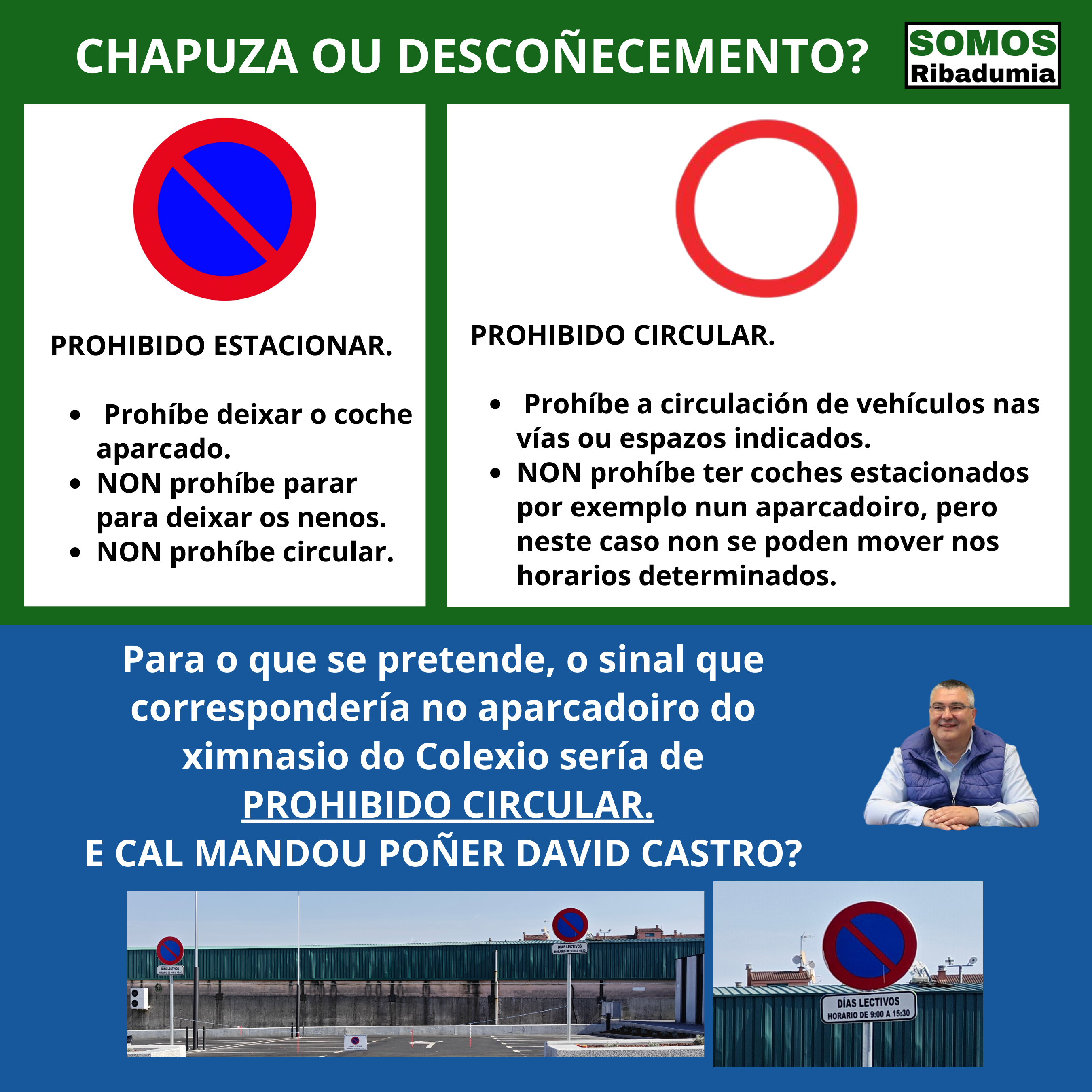 De partida, o goberno , cuxos membros foron vistos nalgún momento conducindo coches polo que se supón que teñen todos e todas o carnét de conducir, parece descoñecer a diferenza entre “prohibido estacionar” e “prohibido circular”, unha diferenza moi ben recollida no código de circulación. Tal é así que para prohibir circular e evitar dese xeito o movemento de coches, puxeron equivocadamente sinais de prohibido estacionar. E remarcamos tamén que os sinais son de “prohibido estacionar” , non de prohibido “parar e estacionar”.