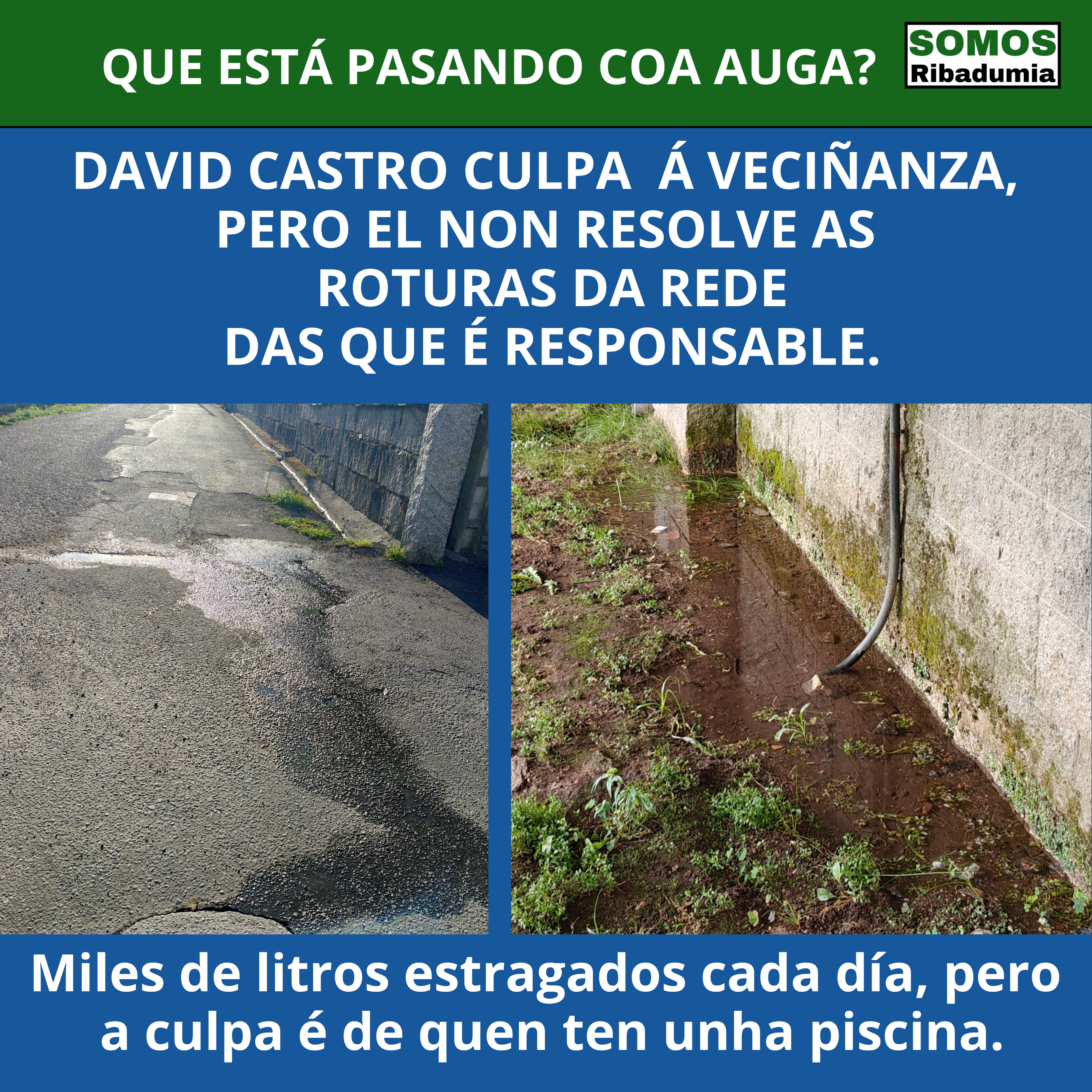 - David Castro culpa á veciñanza da súa incompetencia, mentres ten sen resolver dende fai meses fugas de auga en varios puntos do Concello.