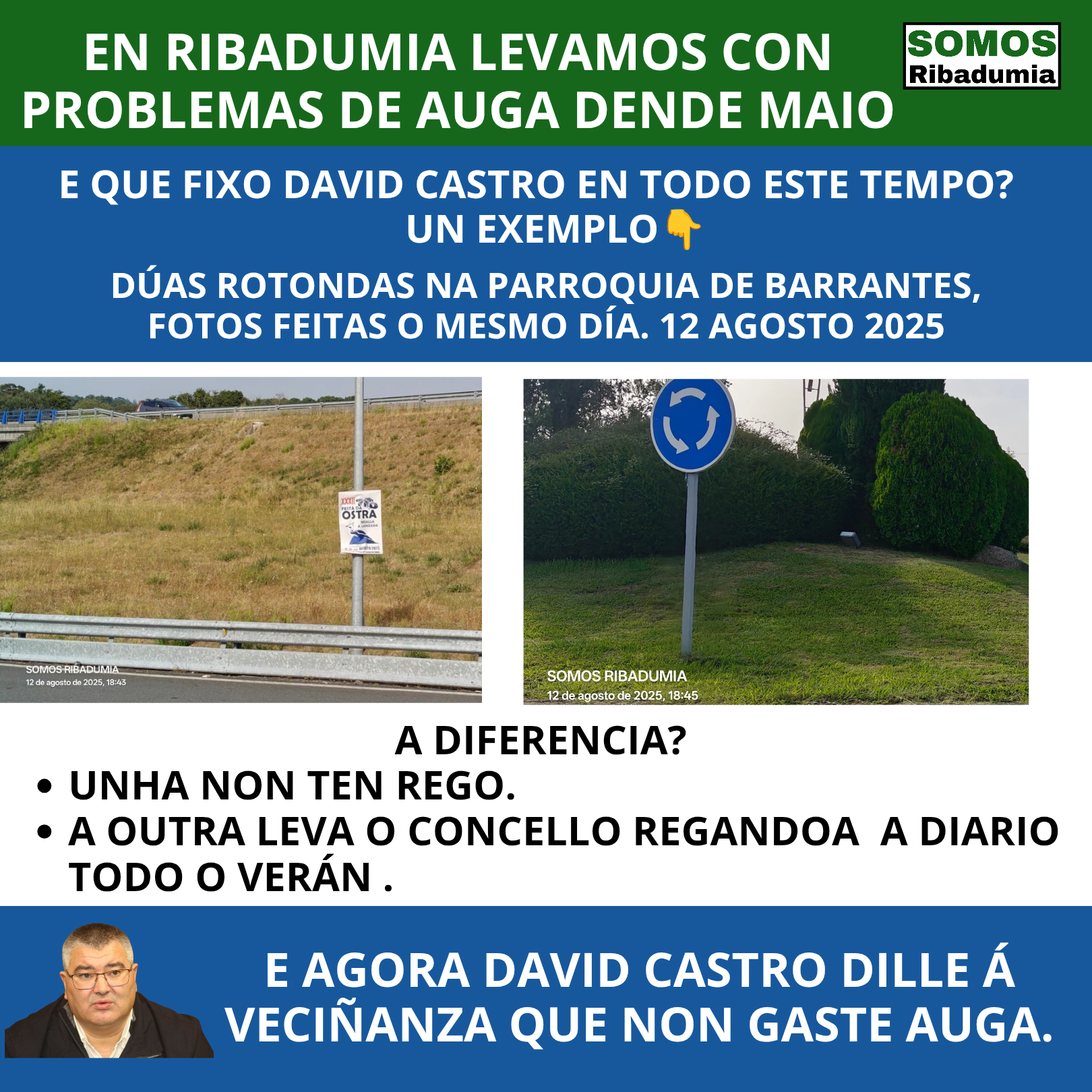 - David Castro pídelle á veciñanza que peche a billa, pero mantén os regos nas zonas verdes do Concello. Lamentable.