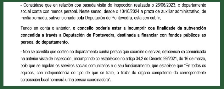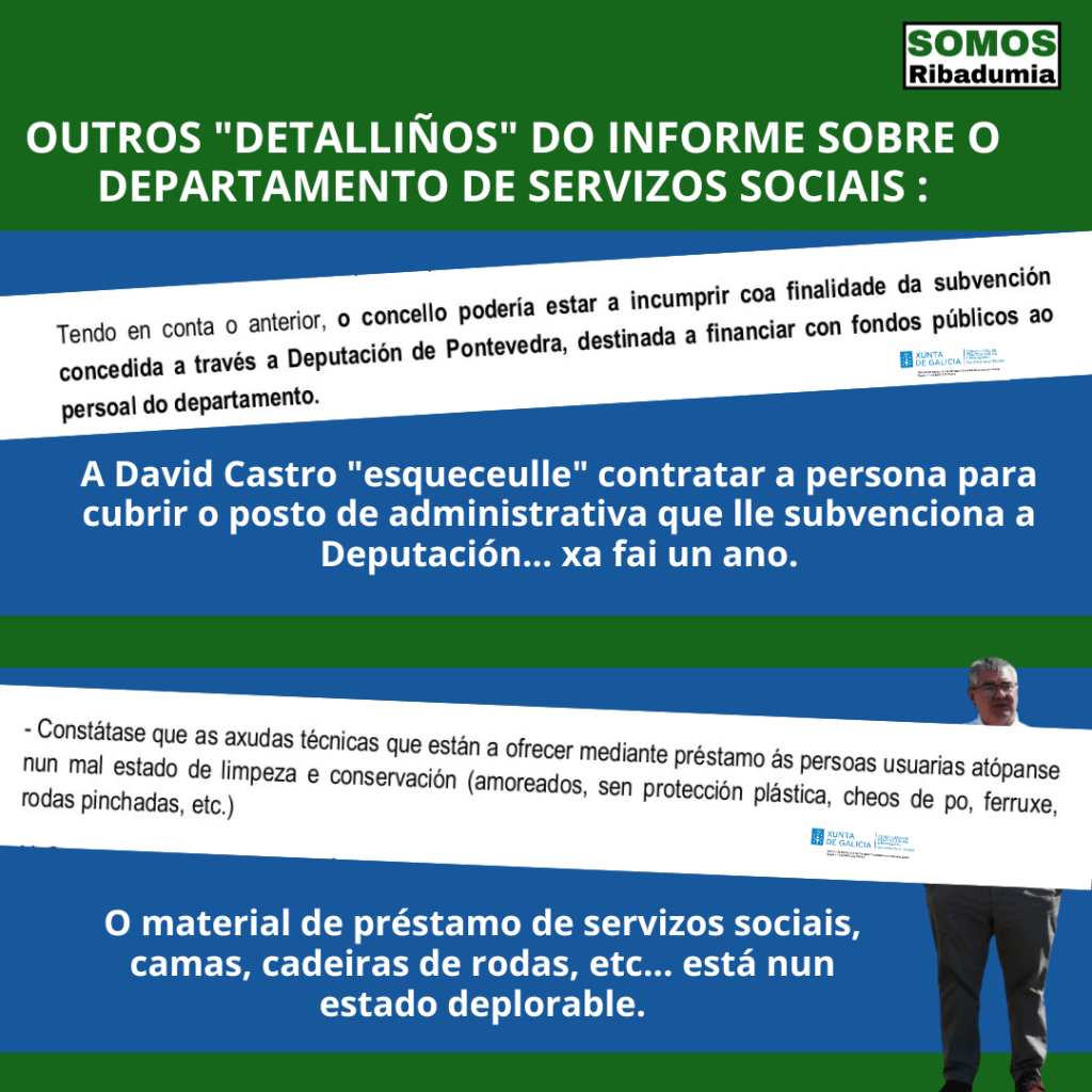 Outro dato sorprendente que se desprende do Informe de Intervención, que haberá que comprobar por que podería ser falso, máis 20% das vivendas e empresas do noso Concello non estarían pagando o recibo do lixo antes de 2025, xustificando nunha suposta revisión do censo de vivendas e negocios parte da suba de ingresos por taxa de lixo neste 2025. “Se isto foi así queremos saber se foi por irresponsabilidade da veciñanza e das empresas, algo difícil de creer nesa cantidade, ou por neglixencia do goberno local. Imos pedir a documentación desa revisión para comprobar cantas vivendas e empresas estaban fora da norma, e os motivos, e de confirmarse neglixencia por parte do Concello, esixiremos responsabilidades políticas. David Castro leva dez anos e medio de alcalde, e é a súa responsabilidades exclusiva asegurarse de que a veciñanza e as empresas son todas tratadas por igual e que se cumpre a lexislacion“.