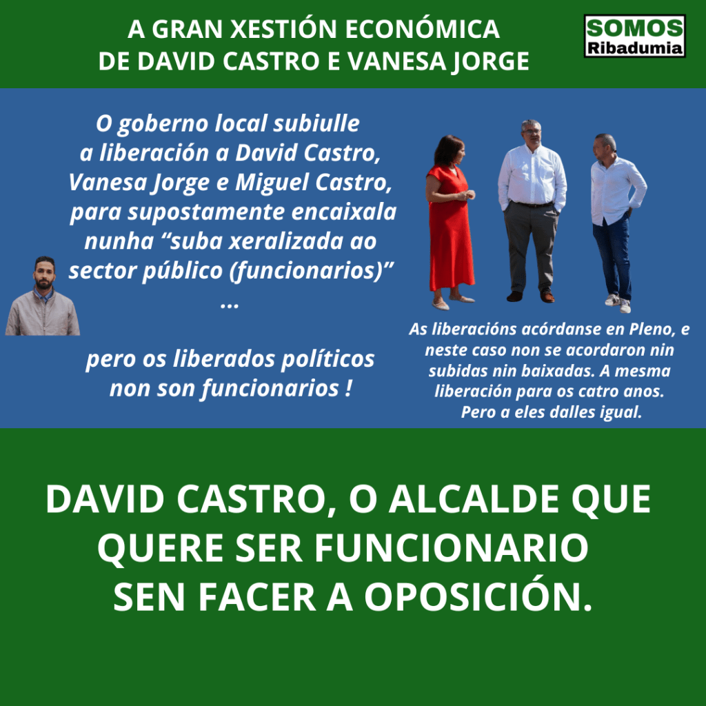 - David Castro, Vanesa Jorge e Miguel Castro aplícanse unha suba da súa liberación xustificándoa como como unha suba do “sector público” , poñéndose ao nivel dos funcionarios.